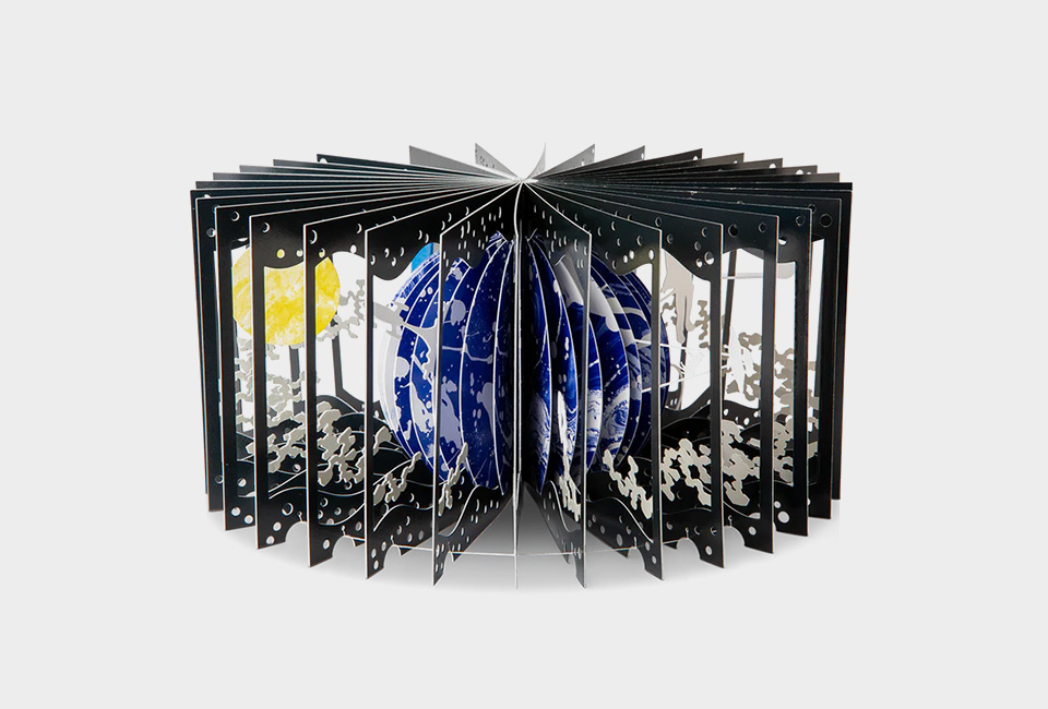 The 360° book is a new and revolutionary format that enables to create a panoramic three-dimensional world. The book opens and expands into a sculpture-like circle of finely crafted pages, displaying stunning three-dimensional scenes that allow the reader to get a 3D, panoramic view of planet Earth. Beautifully packaged, this part book, part sculpture, that can be displayed as a decoration, or laid flat and enjoyed as a traditional book, is available in four titles: Earth and Moon, Snow White, Mount Fuji and Snowy World. Find them in the related products.