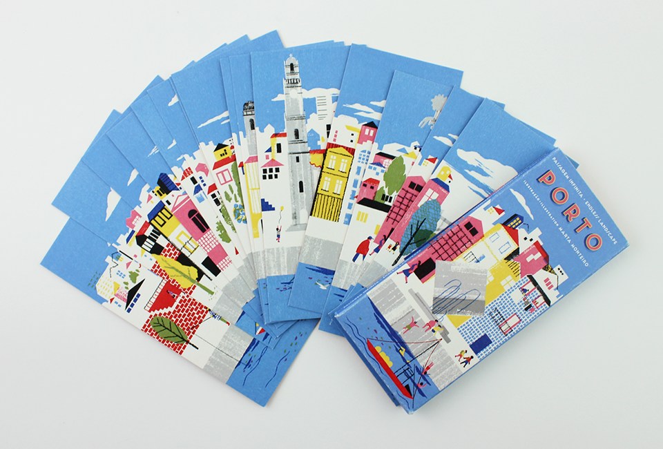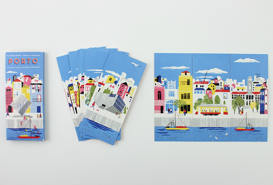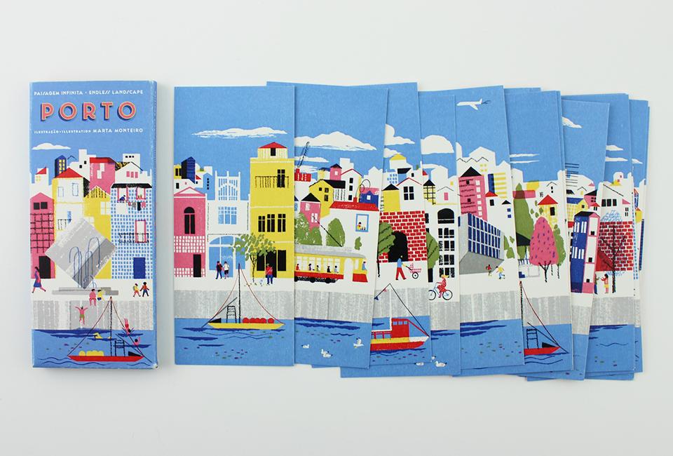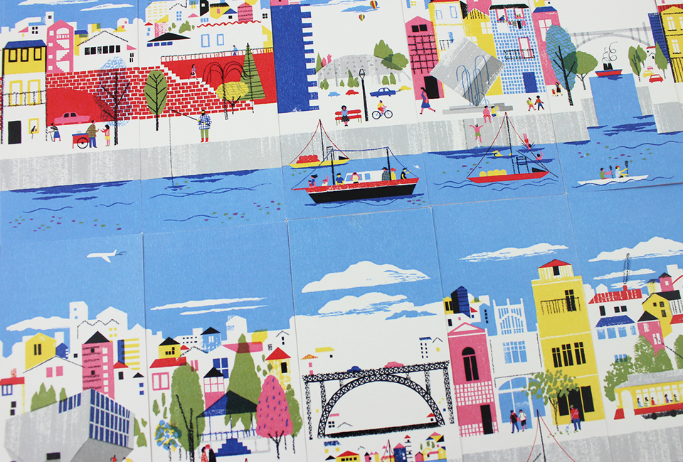Endless Landscape, or Myriorama, as it is also known, is a game invented in 1823 by frenchman Jean-Pierre Brès. In order to play it, you must put the 16 cards side by side and, regardless of their order, they will always combine themselves to create a harmonious landscape. There are billions of possible variations, billions of ways of looking at the city of Porto. Also available Lisbon’s endless landscape.