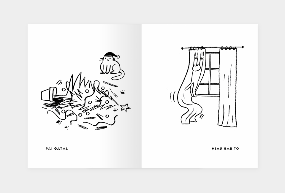 At the request of several feline families, and after a lot of meows, here is Gatálogo, the catsy booklet that accompanies Tóssan’s Cãopêndio. A real bag of cats, where we can find rare specimens of equal seven breaths. A little book that comes with a word of gratitude and admiration to Siné and Tóssan.
