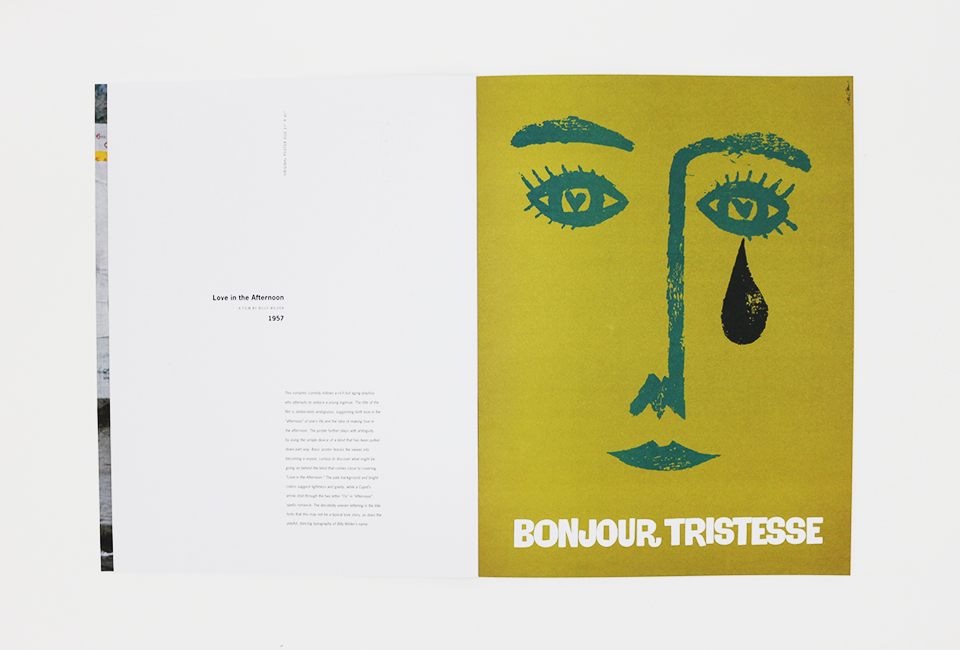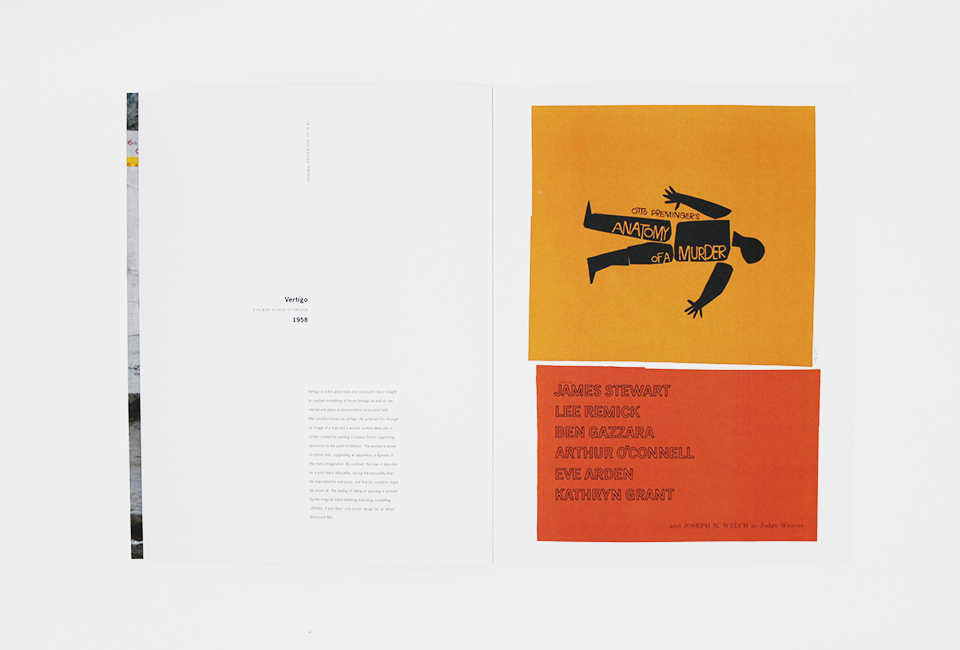 The posters included are: The Man with the Golden Arm; Saint Joan; Love in the Afternoon; Bonjour Tristesse; The Big Country; Vertigo; Anatomy of a Murder; Exodus; Spartacus; The Magnificent Seven; Advise & Consent; The Cardinal; In Harm’s Way; Bunny Lake is Missing; Seconds; Grand Prix; The Fixer; Such Good Friends; The Shining; Schindler’s List.