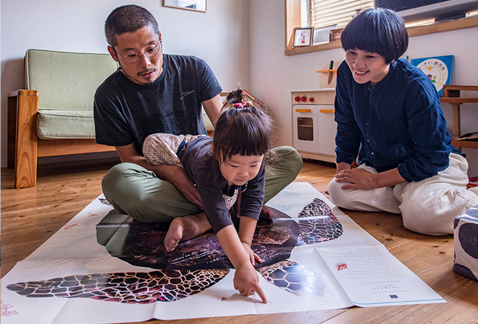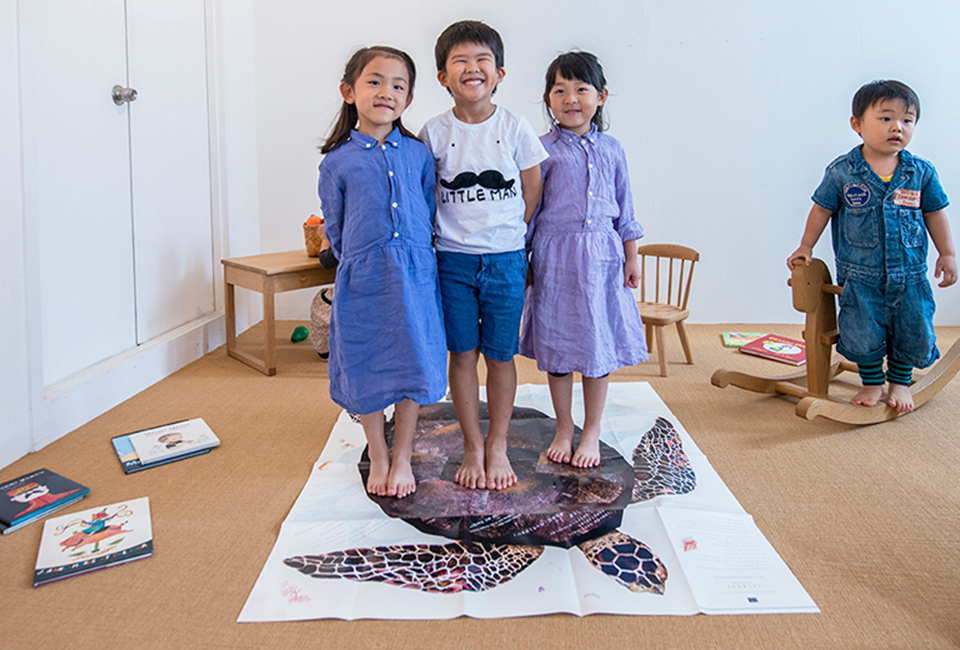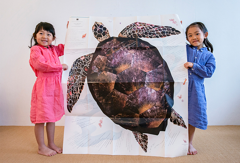 Perfect for kids to explore together with friends and family, this large play mat-style picture book series features both Japanese and English and is filled with tiny hidden details! Measuring 46.8” x 40.4” when unfolded, this Big Book is inspired by the classic Japanese folktale Urashima Taro in which a fisherman saves a turtle from being attacked by horrible children and is taken to a magical undersea kingdom as a reward. The Big Book is designed so that anyone, child or adult, can become the hero of the tale just by opening it up.