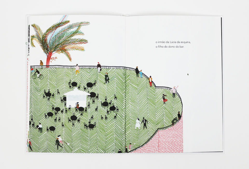 Neste livro somos levados pela mão de um menino que mora num bairro como tantos outros. Ele quer falar-nos de amigos, amigos do peito. Para isso leva-nos pelas ruas do seu bairro, por sinal um bairro muito parecido com o nosso, onde encontramos uma escola, um bar, uma casa à esquina, um jardim, prédios… Mas estas ruas e casas não são a única coisas que nos parecem familiares, também a voz do menino nos soa familiar. E os amigos de quem fala parecem lembrar-nos os nossos, porque todos os temos e todos brincamos com eles num bairro qualquer, esse espaço comum que nos recorda que somos feitos de muitos amigos e sítios, e por isso algo de bom acontece quando os revemos. Um texto poético de Cláudio Thebas maravilhosamente interpretado e amplificado nas belíssimas ilustrações de Violeta Lópiz. Bruaá