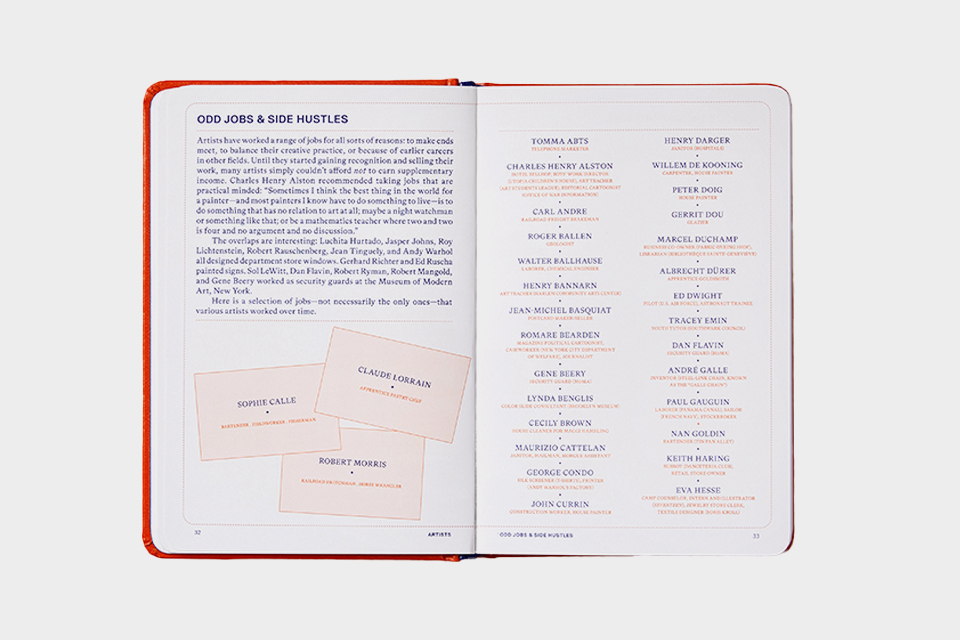 – Nomes dos animais de estimação dos artistas: Fat Fat & Cous-Cous (gatos de Louise Nevelson), Giotto e Goya (cães de John Baldessari)