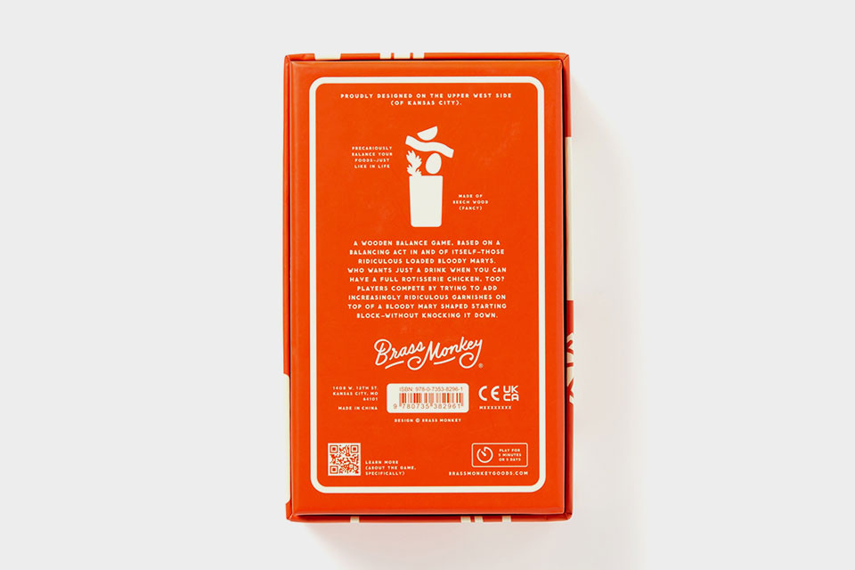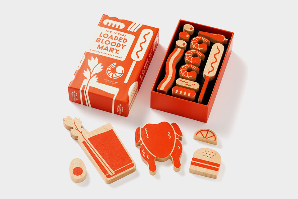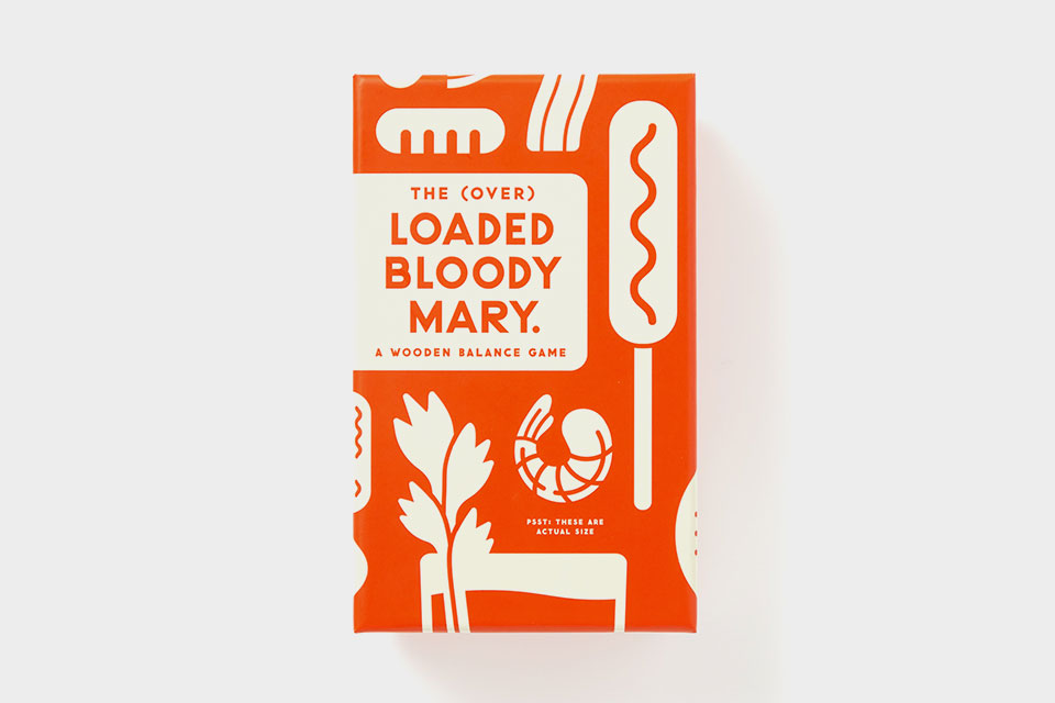 Um jogo de equilíbrio, baseado num acto de equilíbrio por si só – Bloody Marys carregados até ao tutano. A quantidade de itens inusitados que vemos empilhados em cima de um Bloody Mary nunca pára de surpreender – e isso transformou-se num jogo. Os jogadores vão-se revezando, adicionando e empilhando curiosas peças em cima de um bloco inicial em forma de um copo de Bloody Mary – enquanto tentam não ser aquele que derruba as peças todas. Jogo inclui 10 peças de madeira com impressão frente e verso e folha de instruções.