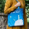 Esta deslumbrante bolsa apresenta o clássico infantil de Antoine de Saint-Exupéry, O Principezinho. A bolsa retrata o Principezinho no seu planeta natal, em frente a um fundo azul profundo com um tema espacial. A parte de trás da bolsa está também adornada com a citação “Todos os adultos já foram crianças… mas poucos deles se lembram disso”.