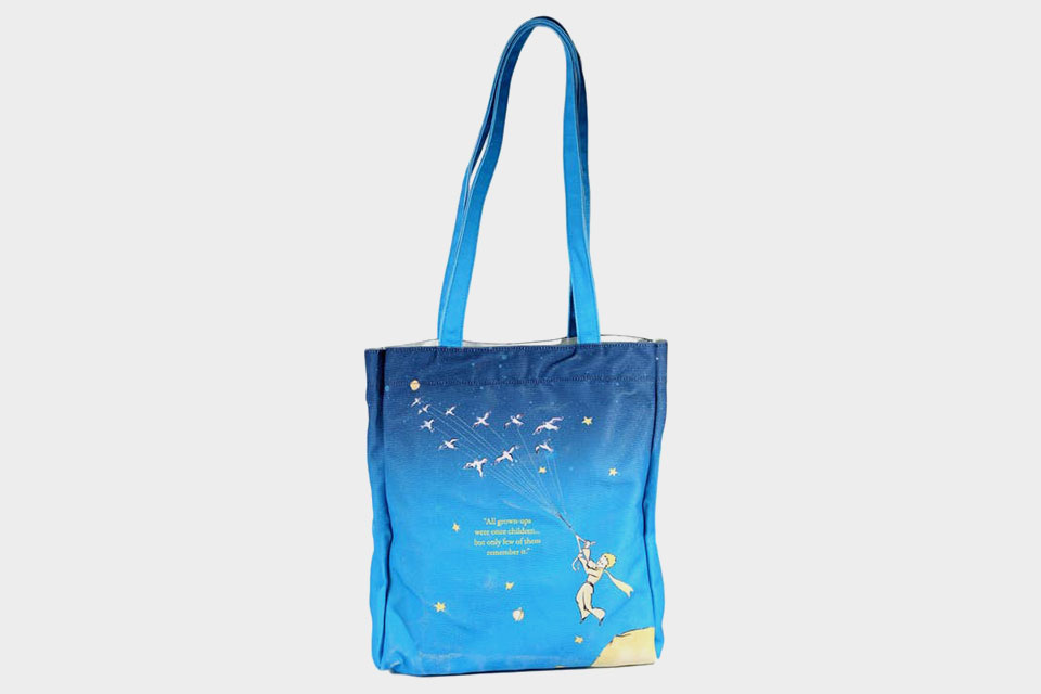 Esta deslumbrante bolsa apresenta o clássico infantil de Antoine de Saint-Exupéry, O Principezinho. A bolsa retrata o Principezinho no seu planeta natal, em frente a um fundo azul profundo com um tema espacial. A parte de trás da bolsa está também adornada com a citação “Todos os adultos já foram crianças… mas poucos deles se lembram disso”.