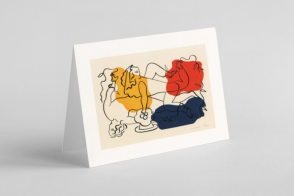 Cartão-postal “Compotier aux trois fruits” do artista Marco del Re.