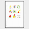 Gianni Rodari e Bruno Munari prestaram sempre muita atenção ao mundo das crianças, compartilhando o propósito de libertar imagens e palavras e fazendo-nos descobrir o prazer da invenção, imaginação e criatividade. Reunindo elementos aparentemente distantes ou até opostos, e apresentando soluções e combinações inesperadas, eles deram novos significados às letras e sinais. Os seus caminhos criativos são paralelos e encontraram-se em muitos livros. Estas ilustrações foram feitas para um desses livros: Filastrocche in cielo e in terra (1960), onde com a sua distinta leveza e traço único, Bruno Munari recria toda a poesia das histórias de Rodari, elevando seu lado imaginativo e a sua capacidade de nos surpreender.