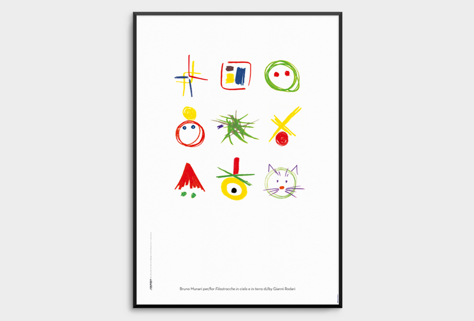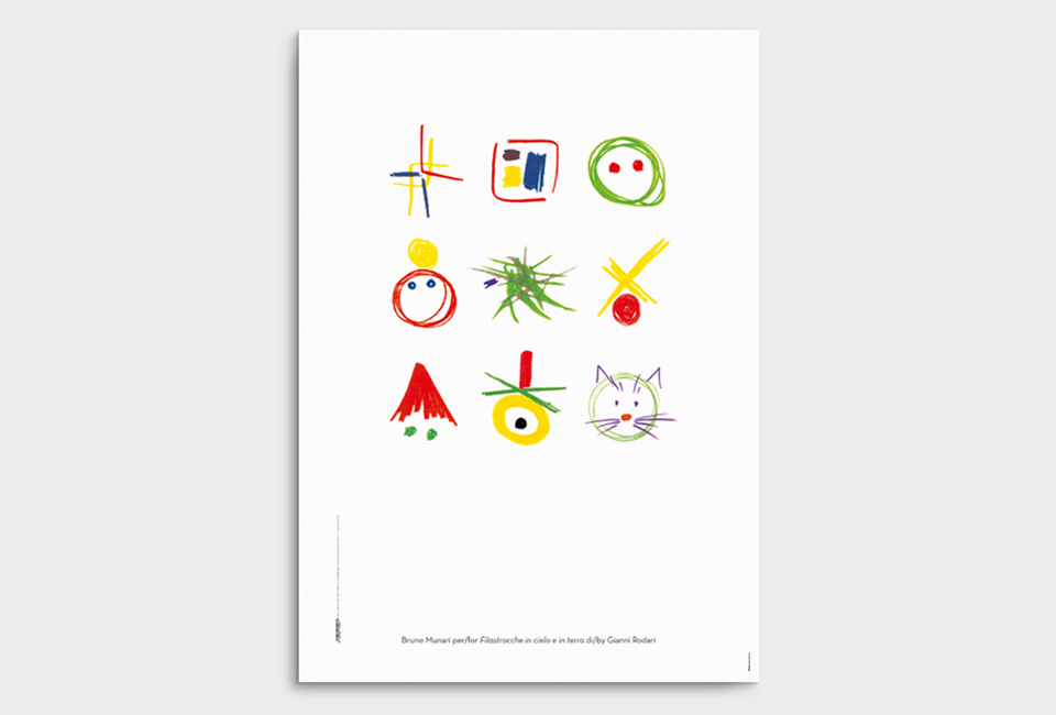 Gianni Rodari e Bruno Munari prestaram sempre muita atenção ao mundo das crianças, compartilhando o propósito de libertar imagens e palavras e fazendo-nos descobrir o prazer da invenção, imaginação e criatividade. Reunindo elementos aparentemente distantes ou até opostos, e apresentando soluções e combinações inesperadas, eles deram novos significados às letras e sinais. Os seus caminhos criativos são paralelos e encontraram-se em muitos livros. Estas ilustrações foram feitas para um desses livros: Filastrocche in cielo e in terra (1960), onde com a sua distinta leveza e traço único, Bruno Munari recria toda a poesia das histórias de Rodari, elevando seu lado imaginativo e a sua capacidade de nos surpreender.