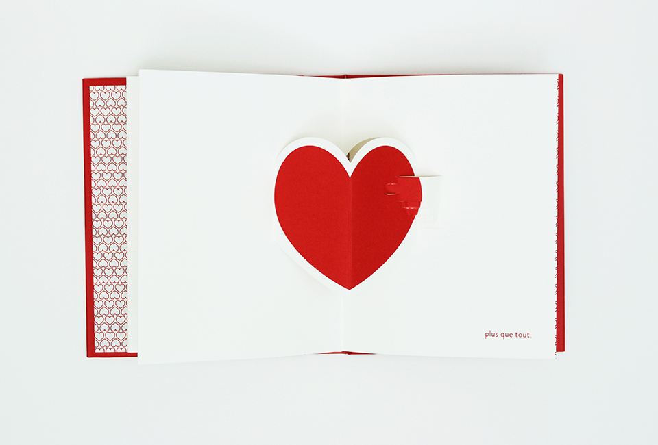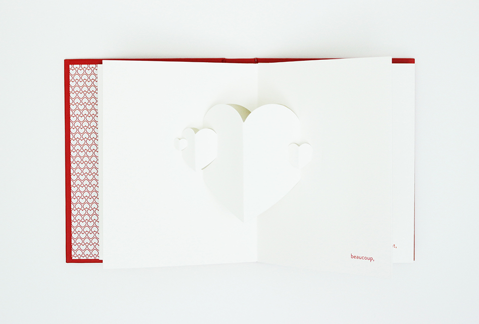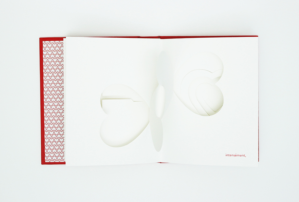 Um pouco, muito, apaixonadamente, loucamente, naturalmente, intensamente … 15 corações  para uma declaração de amor. Um livro poético em “kirigami” de Eva Bourdier.