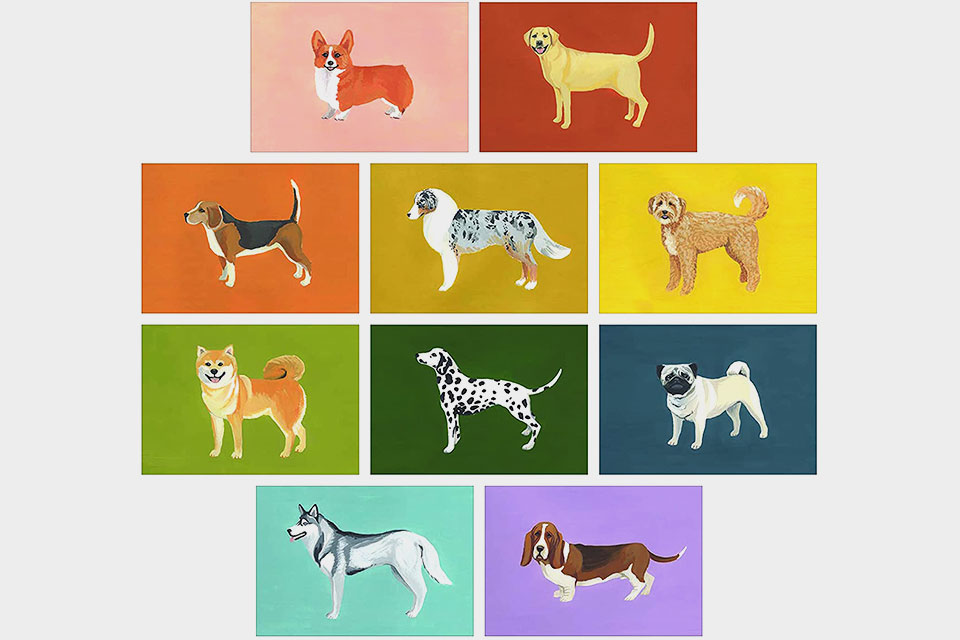 “Dog Box” celebra cães de todas as raças, estilos e variedades com 100 postais de 10 artistas diferentes.