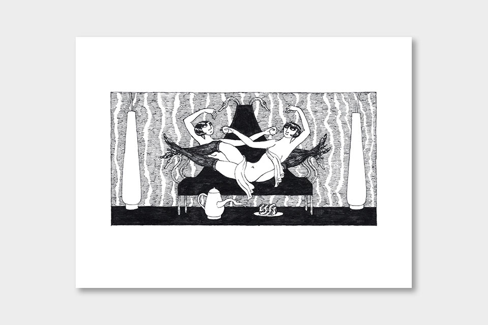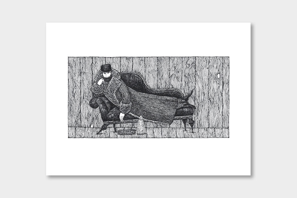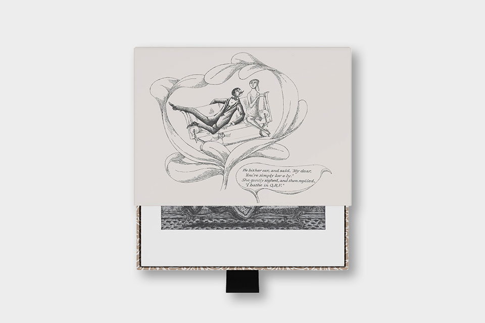 “The Fraught Settee”, Edward Gorey serve o que ele chama de “solvente universal” em salões Eduardianos, onde sofás de desmaiado abrigam encontros intensos e agitados descontentamentos. Sabendo que Gorey tinha uma queda por versos sem sentido, questiona-se se Q.R.V. é uma panaceia enigmática ou uma brincadeira de natureza duvidosa. As iniciais enigmáticas aparecem na capa do livro, embora seu título não. Publicado pela Fantod Press de Gorey em 1990, esta coletânea de versos é tão enigmática quanto seu criador e está agora representada nesta coleção de 16 postais (2 de cada uma das 8 ilustrações), onde cada postal tem, no seu interior, um verso de Gorey.