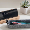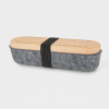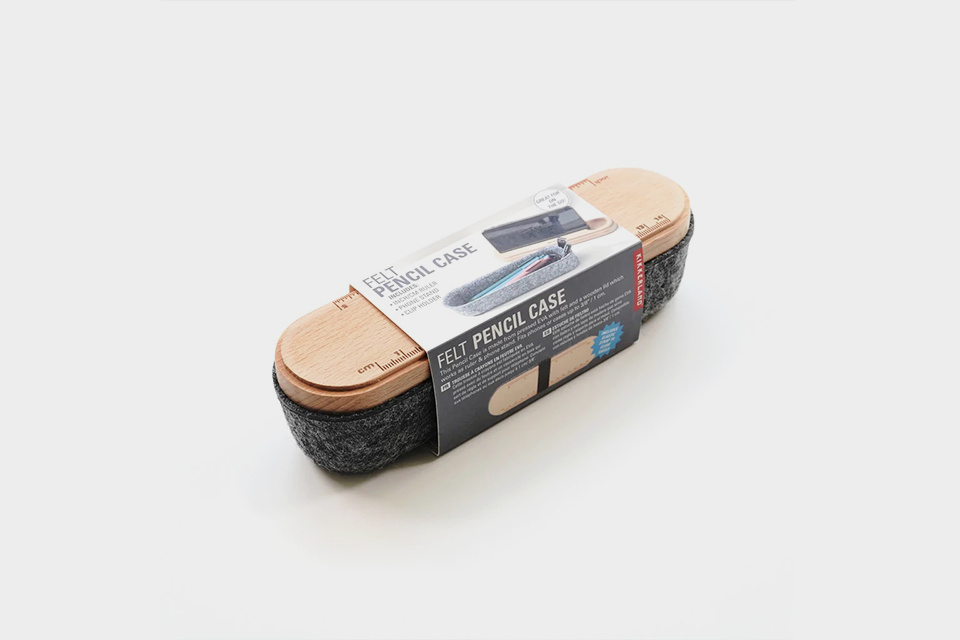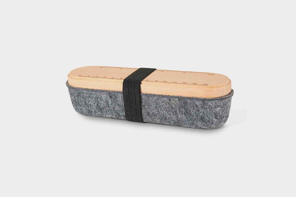 Este estojo prensado com feltro vem acompanhado de uma tampa de madeira que pode ser usada como régua de um lado e do outro lado como suporte de telefone. Mantenha a tampa e o estojo juntos com a alça elástica incluída. Óptimo para a escola, trabalho ou viagem.