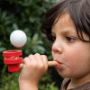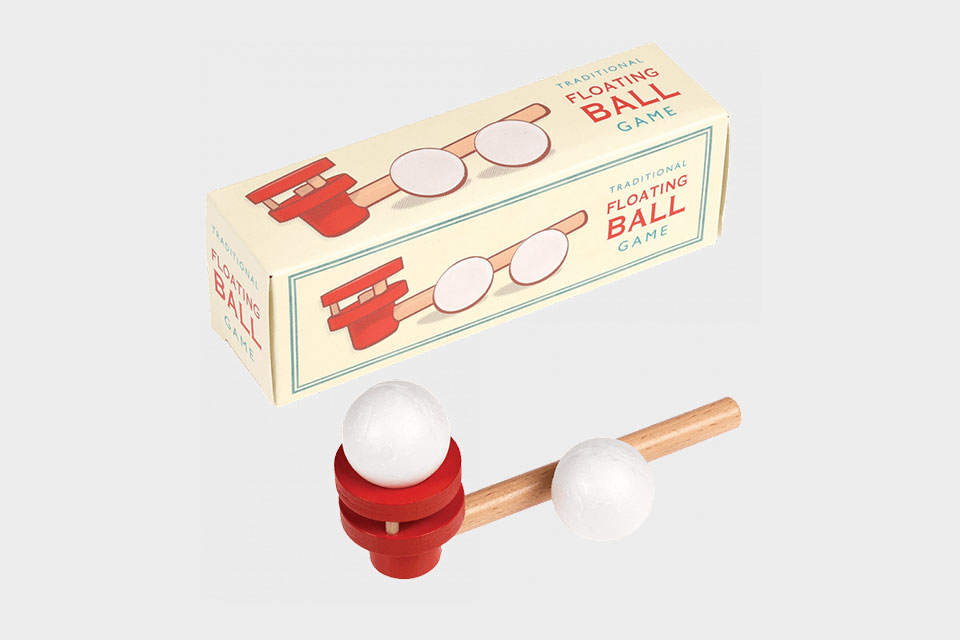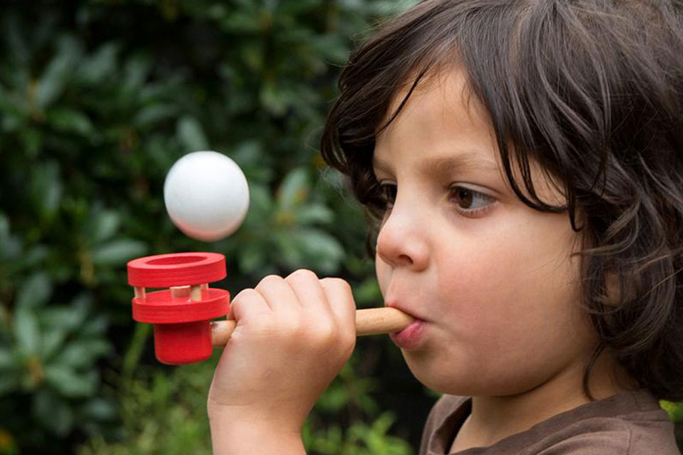 Jogo tradicional que faz as delícias dos mais pequenos (e também dos graúdos): o jogo da bola flutuante. A caixa contém um cachimbo de madeira e duas bolas. Como jogar: sopre no cachimbo de madeira e veja quanto tempo consegue manter a bola no ar. Ganha quem mais tempo aguentar!