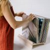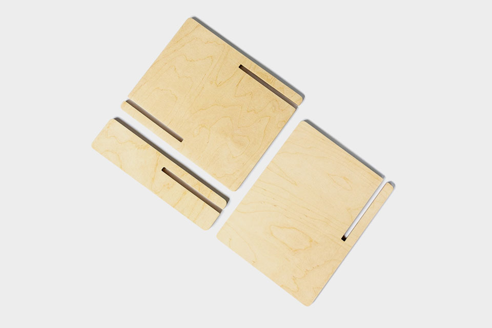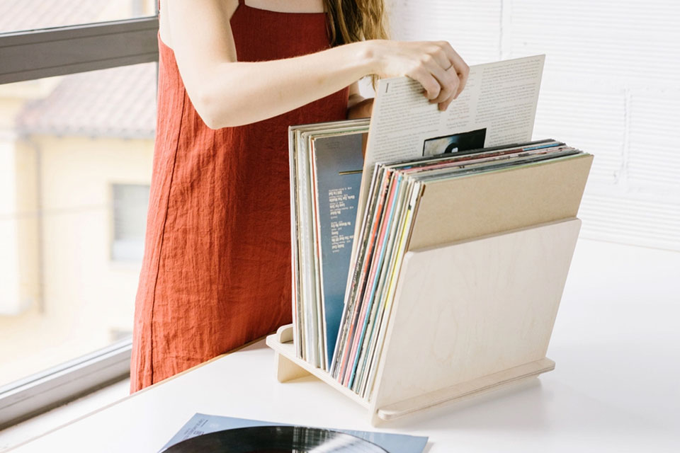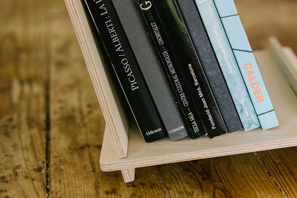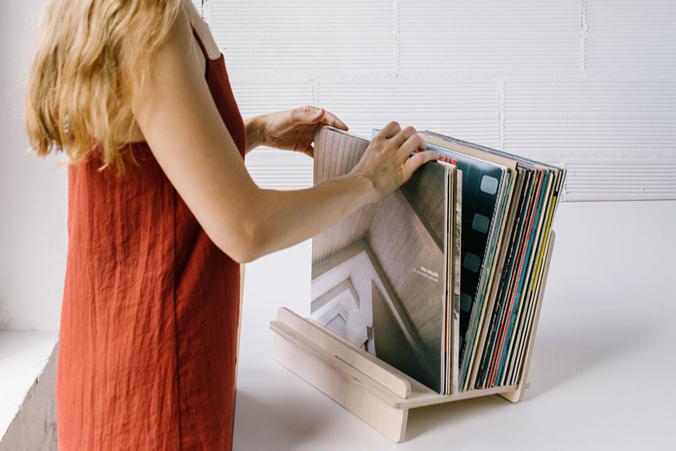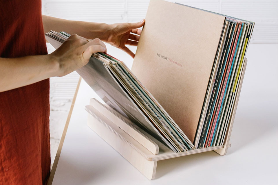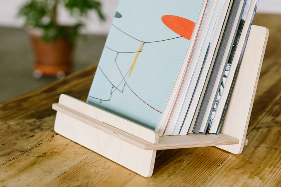 Gatzara é um suporte para livros ou discos de vinil desmontável.