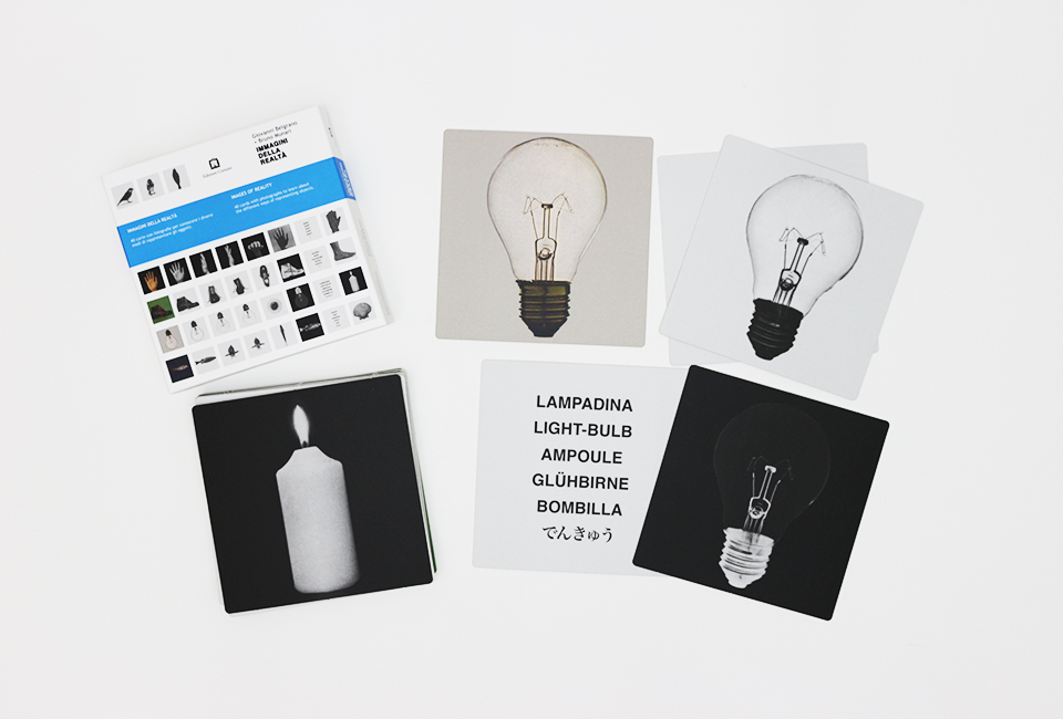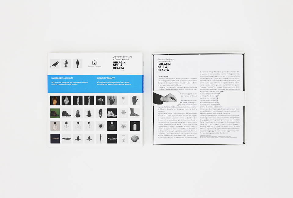Criado por Bruno Munari e Giovanni Belgrano, o jogo “Images of Reality” contém 40 cartas com fotografias que apresentam vários objectos vistos de vários pontos de vista e de várias maneiras. Um sapato, uma mão, um peixe ou uma lâmpada podem parecer muito diferentes se os observarmos de perspectivas diferentes, ou se os observarmos como objectos em mudança, onde o nome é apenas uma das muitas representações possíveis. Comparando a fotografia realista a cores com a fotografia a preto e branco, o negativo fotográfico e o último passo da palavra escrita (em seis línguas: italiano, inglês, francês, alemão, espanhol e japonês), o jogo estimula a aprendizagem das diferenças entre objectos reais e as suas representações.