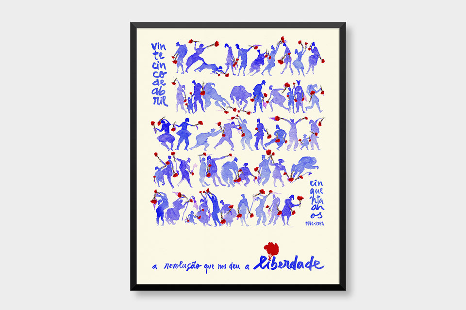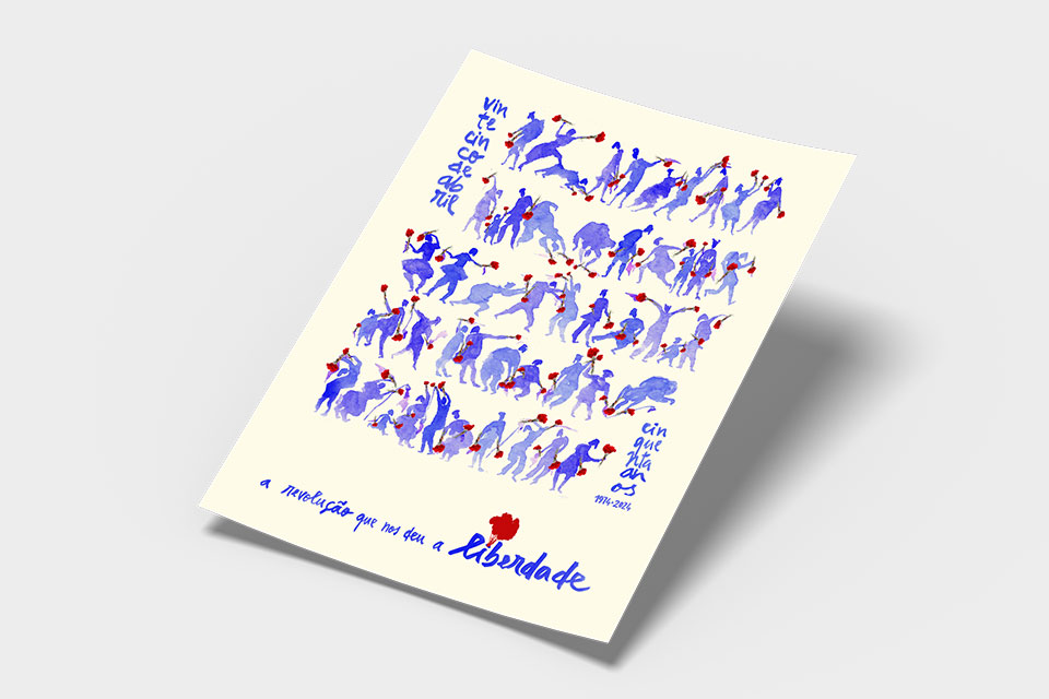 Impressão giclée da autoria do arquiteto, cenógrafo e pintor José Manuel Castanheira, que celebra os cinquenta anos do 25 de Abril de 1974. Uma ilustração que foi capa da edição de Abril do JL – Jornal de Letras.