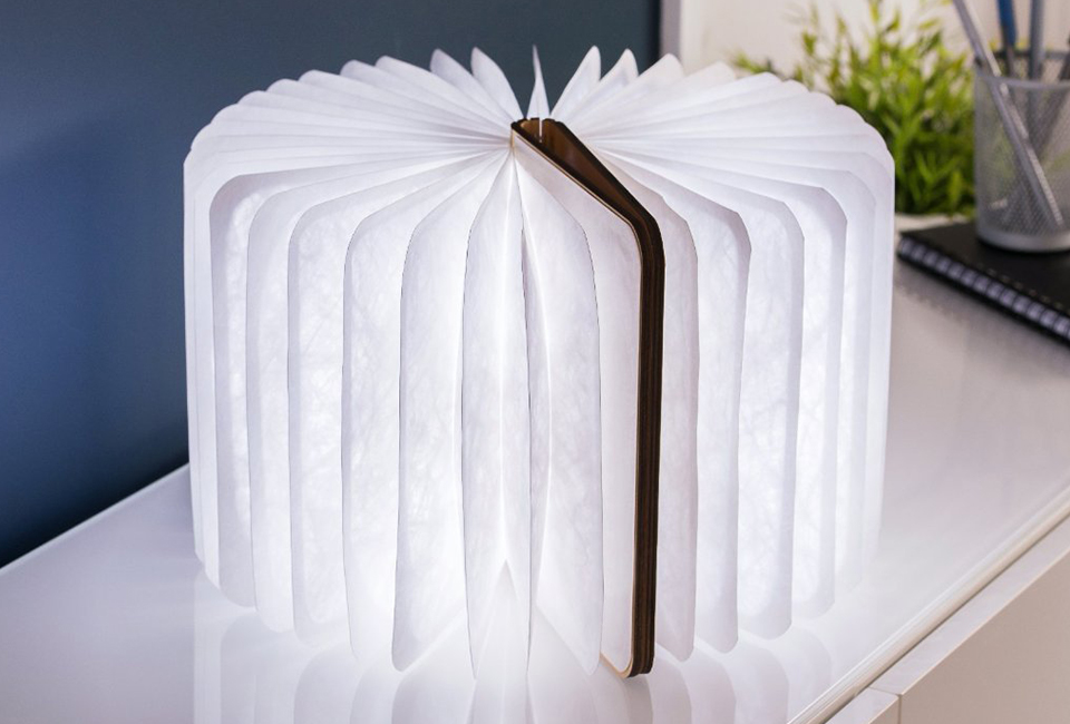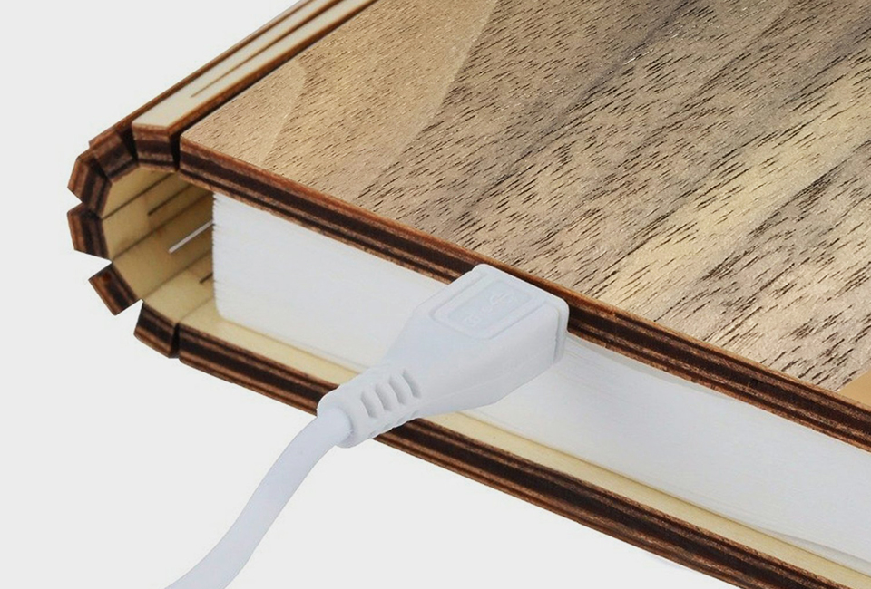 Este inteligente livro-candeeiro é uma maravilhosa peça artística para qualquer casa. Parece um livro de madeira cortado a laser quando fechado, mas quando aberto, transforma-se num candeeiro que emite uma suave luz branca através de páginas resistentes à água. Com um design requintado, este livro consegue uma abertura até 360º graças a ímanes ocultos. Sem qualquer fio, é alimentado por uma bateria integrada recarregável, para que o possa colocar em qualquer divisão da casa. A bateria leva aproximadamente 2-3 horas para carregar e dura cerca de 10 a 12 horas em uso constante, ou também poderá estar conectada permanentemente. Será um livro? Será um candeeiro? É uma adorável peça de design da qual ninguém se irá querer desligar.