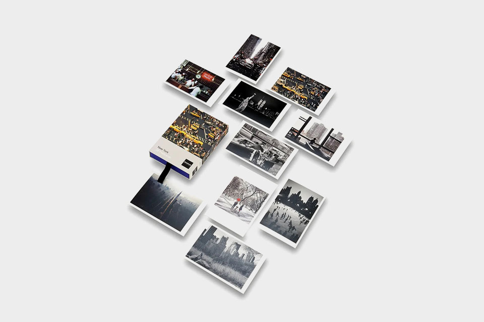 Uma elegante caixa com 36 postais com imagens icónicas de Nova Iorque feitas por alguns dos fotógrafos mais conhecidos da Magnum como Henri Cartier-Bresson, Werner Bischof, René Burri, Eve Arnold, Cornell Capa e Bruno Barbey.