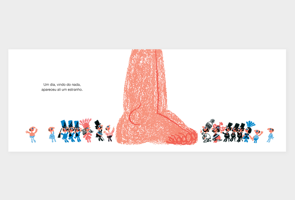 Um rei e o seu povo vivem em paz até ao dia em que a chegada de um estranho deixa o país numa grande agitação. Ele não se parece com eles. Na verdade, este estranho parece ser tão diferente que as pessoas encontram grande dificuldade em falar com ele, optando pelo caminho fácil da suspeição num cenário infelizmente já familiar: guardas, políticos ignorantes, a ameaça da força militar… “O estranho”, novamente relevante nos nossos dias, é uma pequena história repleta de grandes temas, e que celebra de forma esperançosa o triunfo da aceitação e da empatia sobre a ignorância e o preconceito.