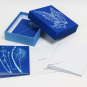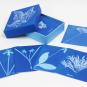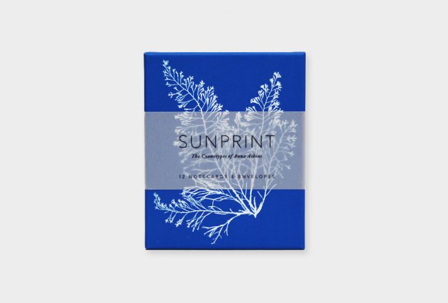 Considerada como a primeira fotógrafa (e a primeira a publicar um livro de fotografias: Photographs of British Algae: Cyanotype Impressions), a botânica vitoriana Anna Atkins fez deslumbrantes cianótipos (processo de impressão fotográfica em tons azuis) de centenas de plantas diferentes. Esta caixa reúne doze desses fotogramas com algas, fetos e iridáceas em tons ricos e com detalhes maravilhosos. Os envelopes são igualmente impressos no interior com imagens em cianótipo das páginas manuscritas dos cadernos de Atkins.