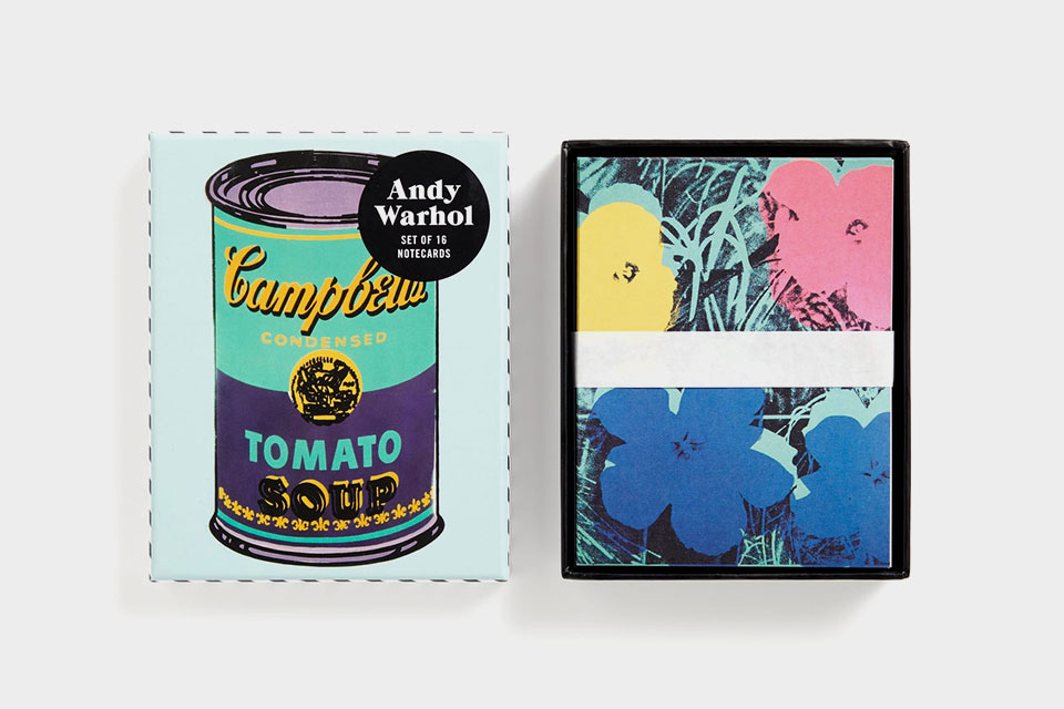 Conjunto de postais Andy Warhol Pop Art Notecard Set, da Galison, com postais dobráveis e simples com algumas das mais conhecidas obras de Warhol. Os envelopes, que acompanham os postais, oferecem um extra especial de “surpresa e deleite” com citações de Warhol impressas dentro da aba de cada envelope. São 12 postais, 2 de cada uma das seis obras eleitas e de vários tamanhos.