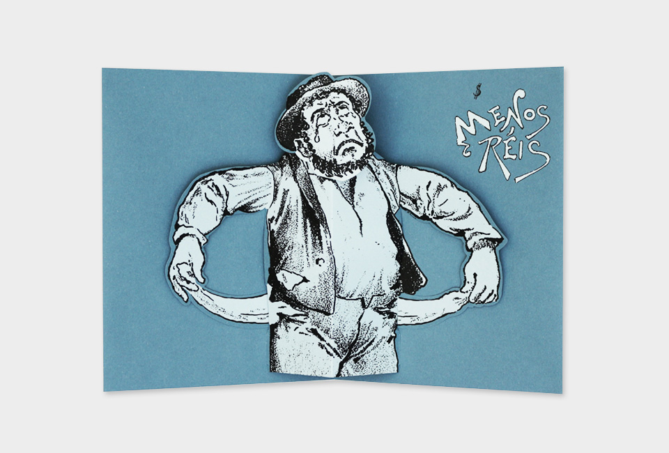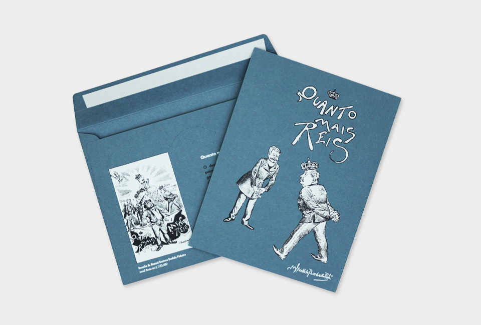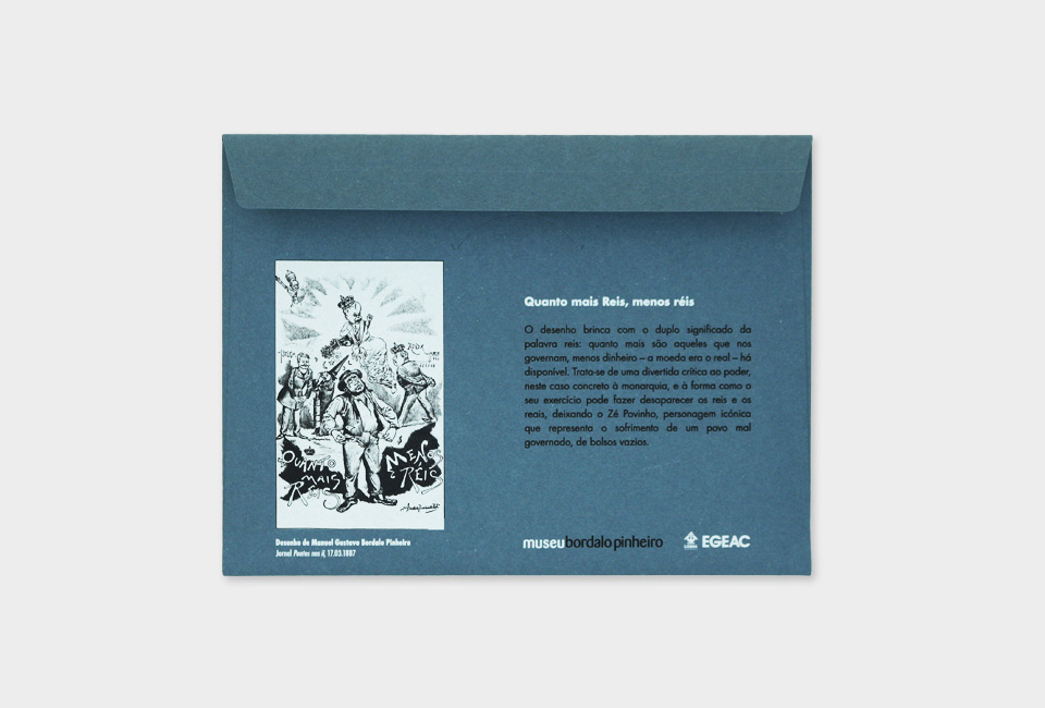 “Quanto mais Reis, menos réis” é um postal em pop-up com ilustração de Bordalo Pinheiro.