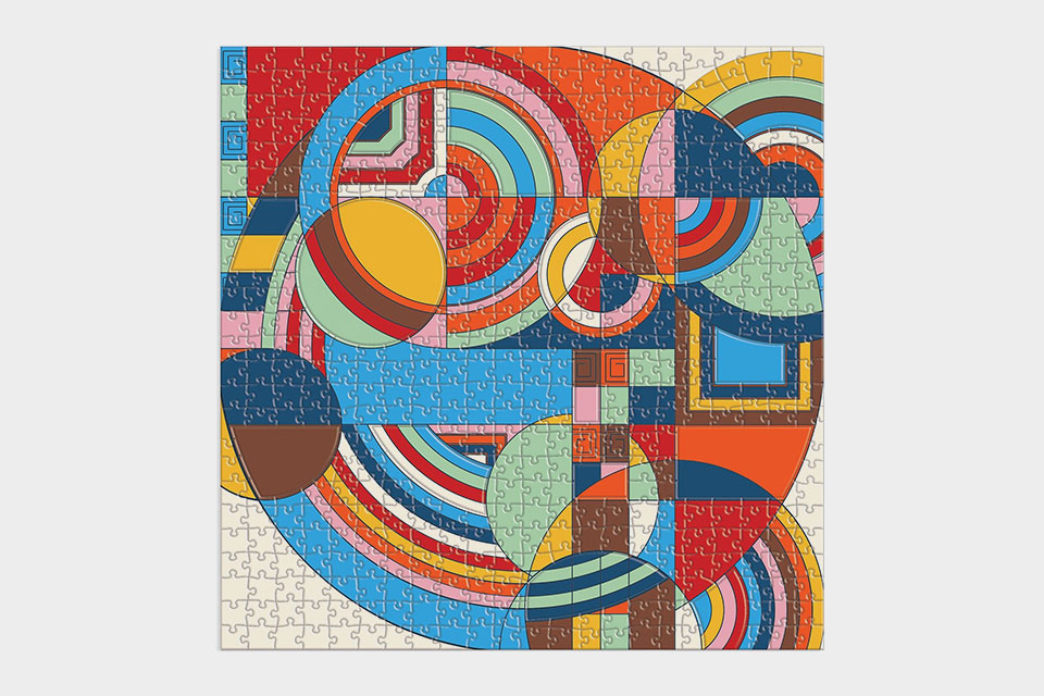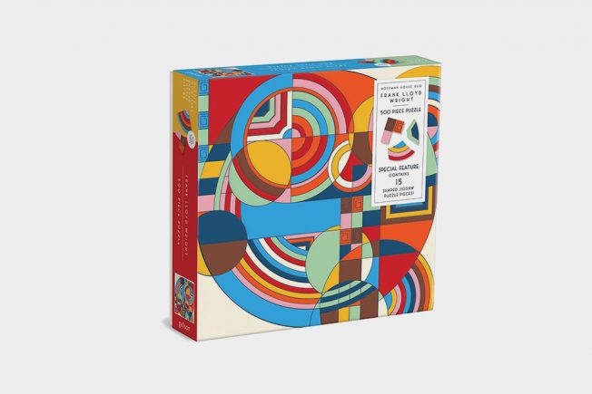 O puzzle Hoffman House Rug, de Frank Lloyd Wright, com 500 peças de diferentes formatos, apresenta um icónico desenho geométrico colorido de Wright.