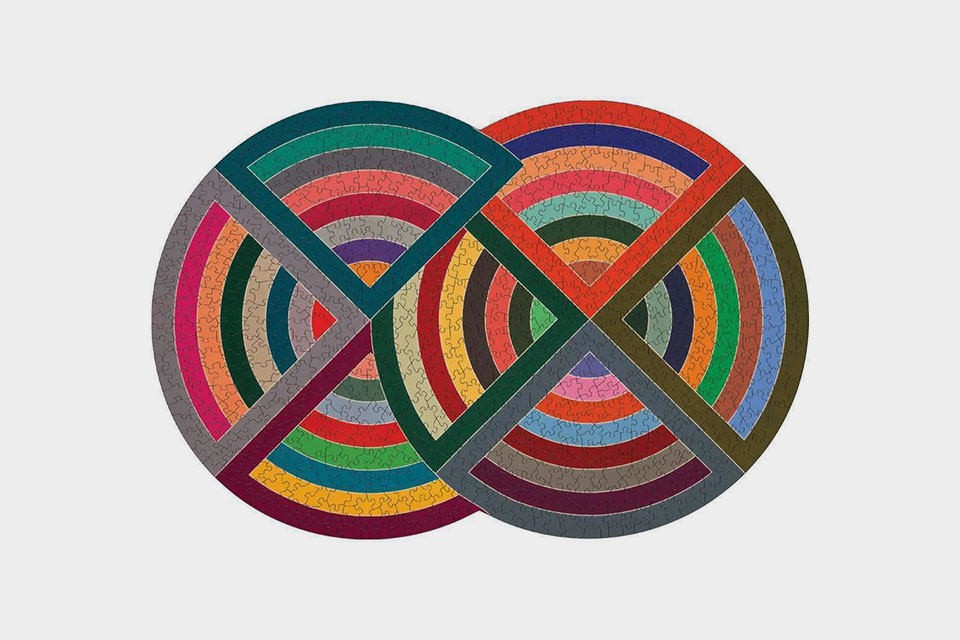 Apresentando a colorida pintura geométrica Firuzabad, uma obra da coleção do MoMA, este puzzle de 750 peças é feita com um corte único de forma a transmitir esta extraordinária obra de arte abstrata. Quando finalizado, este puzzle apresenta dois círculos sobrepostos, preenchidos com linhas concêntricas e diagonais de cores brilhantes.