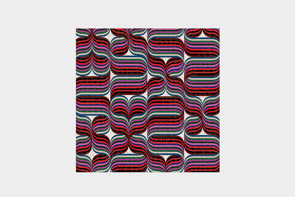 O puzzle de dupla face Trina Turk (500 peças) apresenta duas imagens abstratas diferentes…
