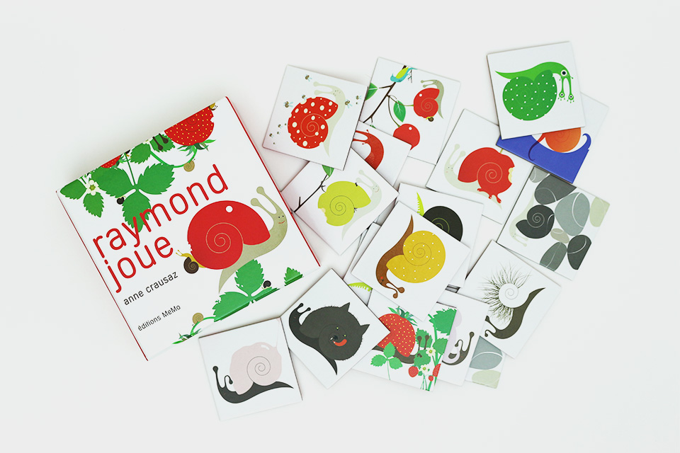 Raymond é um caracol, filho de Germain e Lucette. Raymond é um sonhador, imagina-se como um morango, uma lesma, uma centopéia e até uma girafa. Mas Raymond, no final, sente-se feliz por ser um caracol neste clássico jogo de memória, que consiste em virar as cartas uma a uma para ir encontrando os pares. Adultos, cuidado… as crianças vão ganhar. Uma caixa colorida que reúne 22 pares de caracóis.