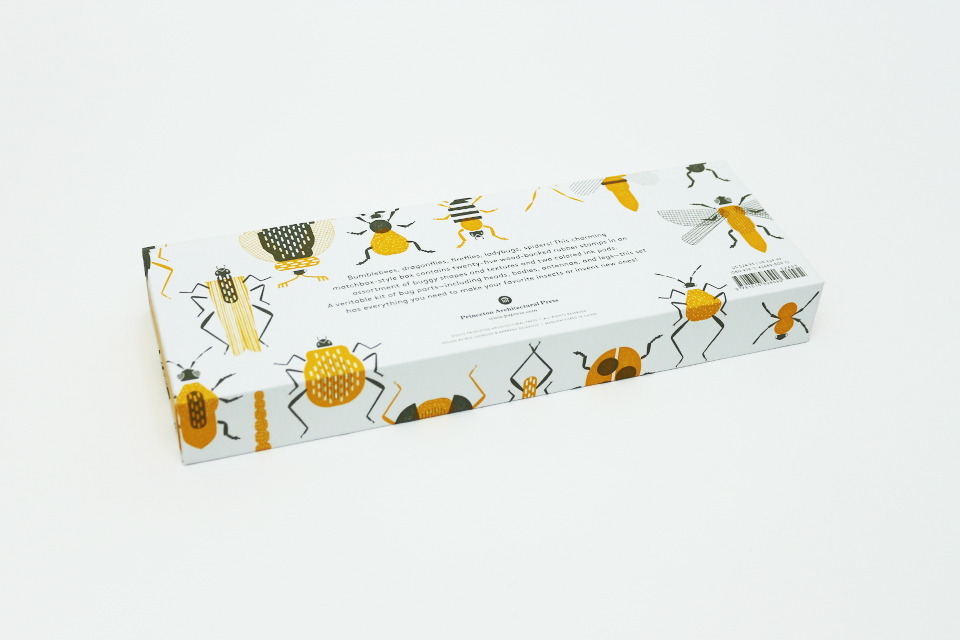 Abelhas, libélulas, pirilampos, joaninhas, aranhas! Esta robusta caixa em estilo caixa de fósforos contém vinte e cinco carimbos de borracha…