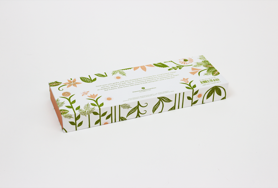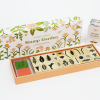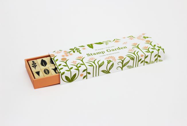 Crie o seu próprio jardim com este conjunto de carimbos de borracha de alta qualidade e duas almofadas de tinta coloridas. A robusta caixa, estilo caixa de fósforos, apresenta vinte e cinco carimbos de madeira com uma variedade de formas e texturas, de folhas e caules para botões e pétalas – até mesmo uma abelha! Stamp Garden, um verdejante conjunto de peças, contém todas as peças de inspiração botânica que precisa para cultivar um jardim imaginário, um belo buquê ou um padrão botânico. As combinações são infinitas.