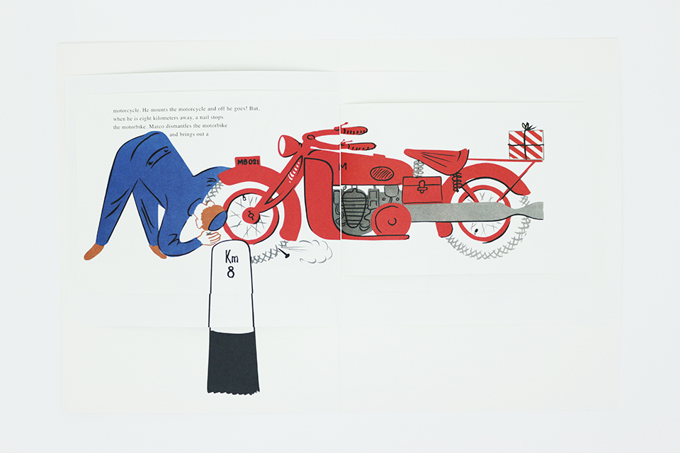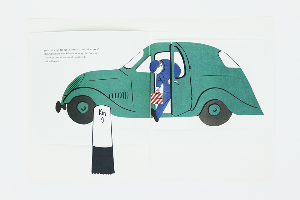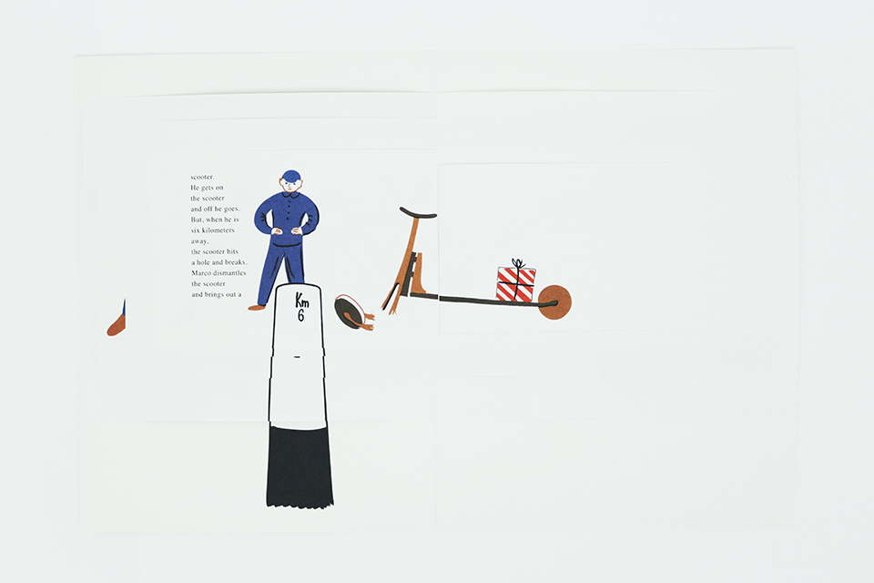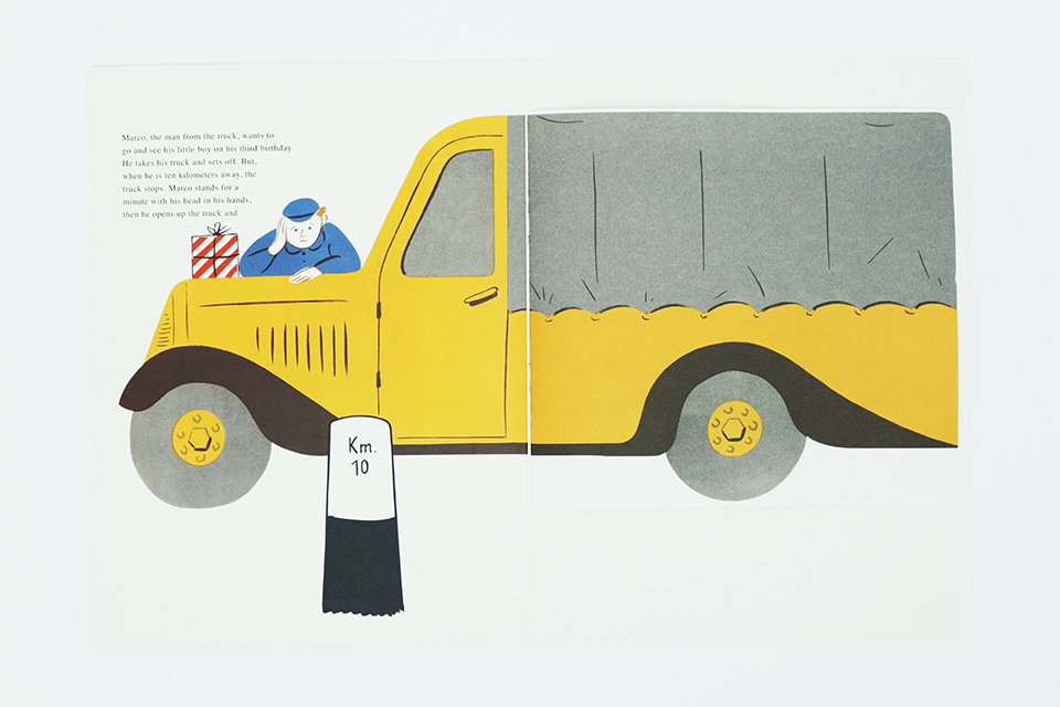 “The birthday present” faz parte da histórica série de 1945 criada por Munari. Álbuns animados criados para crianças usando grandes imagens, páginas e encartes de diferentes tamanhos e cortantes variados para despertar a curiosidade do observador e deixá-lo literalmente pendurado em cada página.