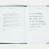 Esta coleção portátil é o presente perfeito para cozinheiros, estudantes de cozinha e qualquer pessoa curiosa sobre as ideias e personalidades que moldam a arte dos sabores. Citações de Mario Batali, James Beard, Anthony Bourdain, Julia Child, Sally Clarke, Tom Colicchio, Elizabeth David, Thomas Keller, Eric Ripert, Alice Waters entre muitos, muitos outros.