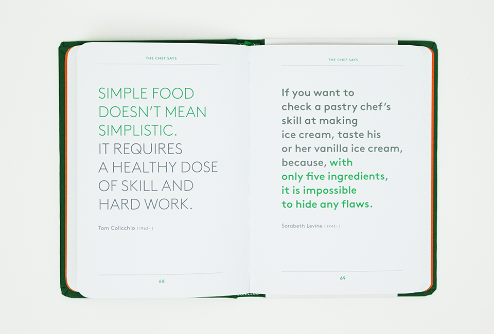 Esta coleção portátil é o presente perfeito para cozinheiros, estudantes de cozinha e qualquer pessoa curiosa sobre as ideias e personalidades que moldam a arte dos sabores. Citações de Mario Batali, James Beard, Anthony Bourdain, Julia Child, Sally Clarke, Tom Colicchio, Elizabeth David, Thomas Keller, Eric Ripert, Alice Waters entre muitos, muitos outros.