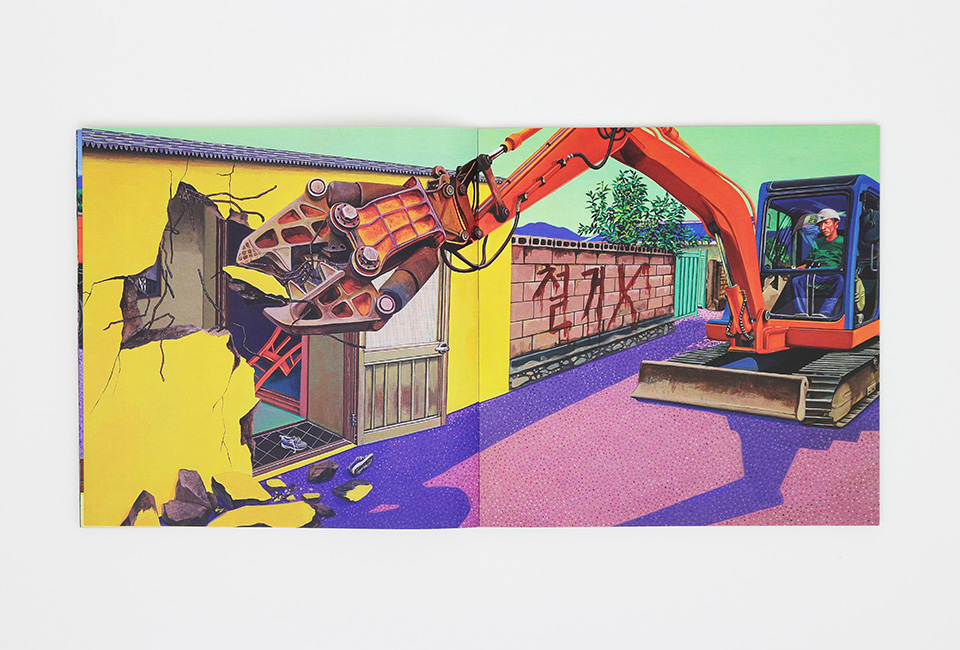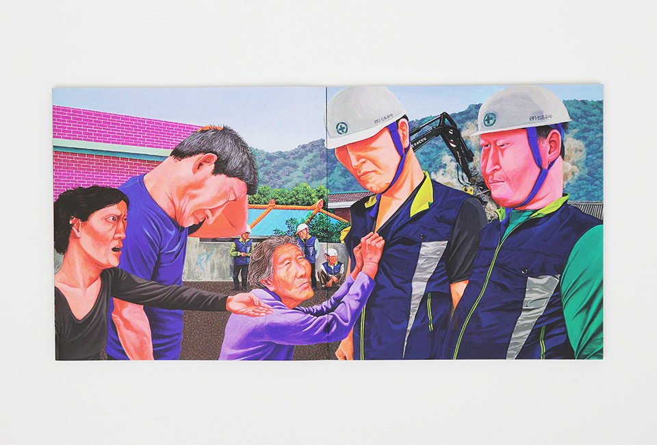 A partir de sua experiência pessoal, e usando cores vivas, a artista expressa as emoções das pessoas, cuja pacífica vila ficará submersa com a  construção de uma barragem.
