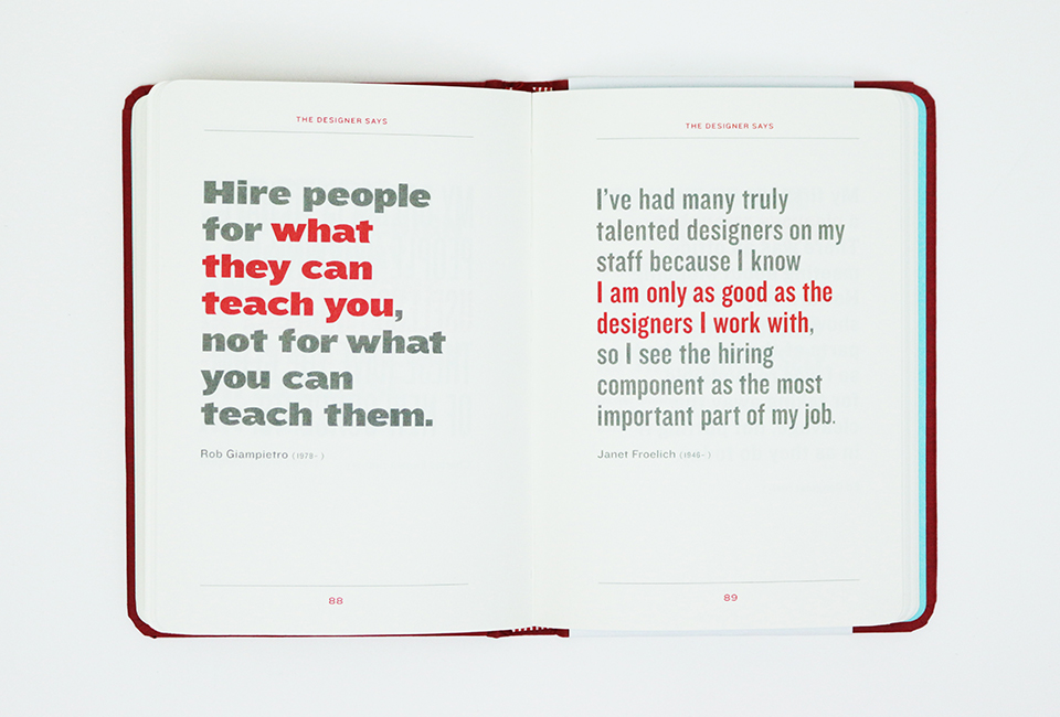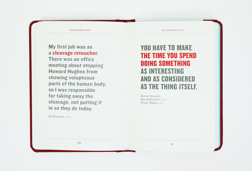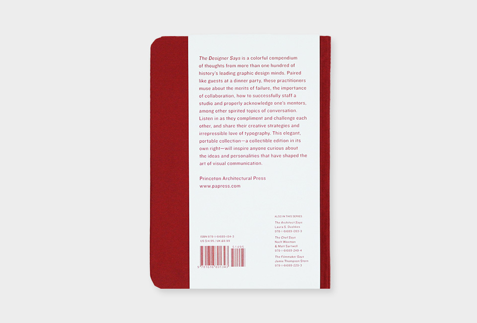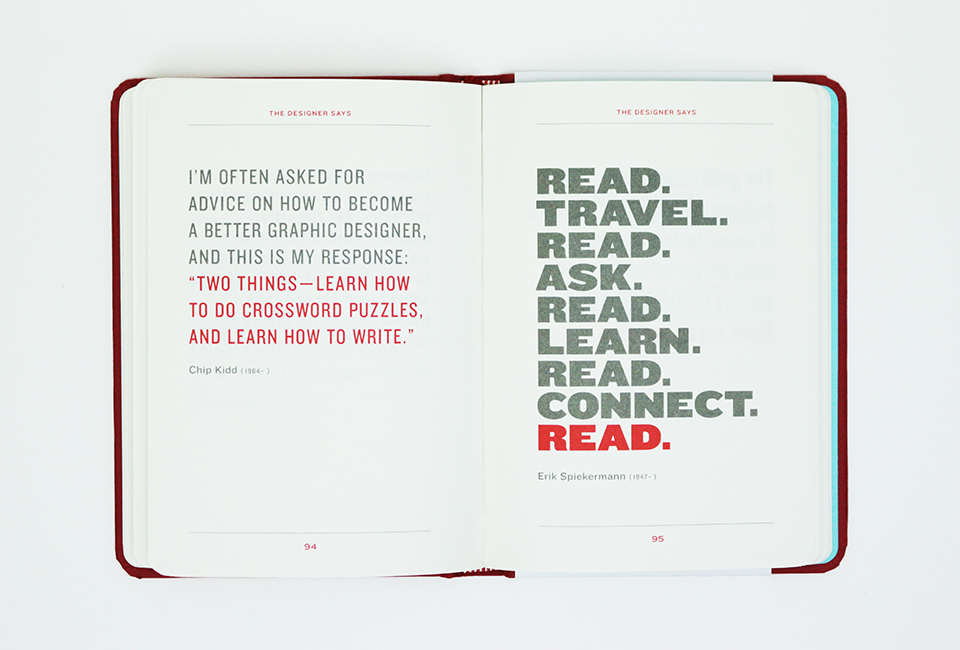 Esta coleção portátil é o presente perfeito para designers, estudantes e qualquer pessoa curiosa sobre as ideias e personalidades que moldam a arte da comunicação visual. Citações de Otl Aicher, Saul Bass, Michael Bierut, Irma Boom, Robert Brownjohn, Matthew Carter, Art Chantry, Ivan Chermayeff, Seymour Chwast, Charles e Ray Eames, Ed Fella, Alan Fletcher, Adrian Frutiger, Eric Gill, Milton Glaser, Jessica Helfand, Experimental Jetset, Ellen Lupton, Karel Martens , Debbie Millman, Paul Rand, Erik Spiekermann, Jan Tschichold, Massimo Vignelli e Hermann Zapf, entre muitos, muitos outros.