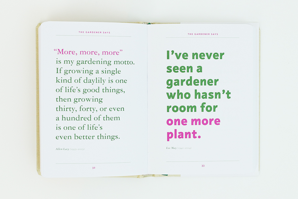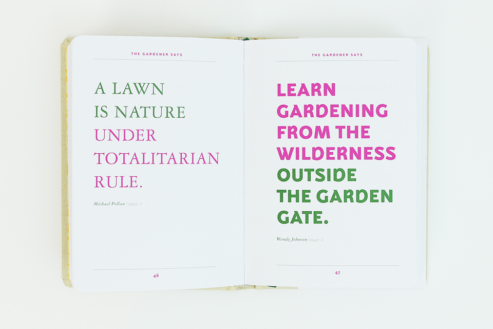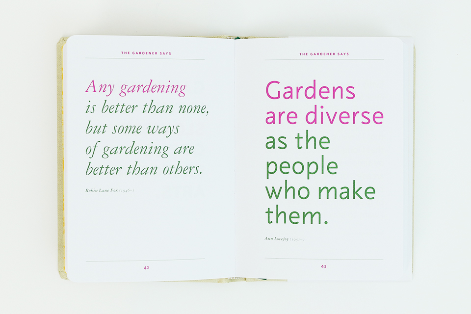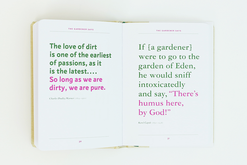 “The Gardener Says” convida os leitores para uma festa no jardim, onde convidados como Gertrude Jekyll, Henry David Thoreau, Michelle Obama, Michael Pollan, etc., compartilham suas ideias e palavras de inspiração. São citações de jardineiros, poetas, filósofos e paisagistas que destacam as alegrias e os desafios da jardinagem – a exaustão no final de um longo dia de trabalho, a satisfação de ver uma flor desabrochar, a paz e a felicidade do tempo passado em contemplação silenciosa. Um passatempo delicioso, uma ferramenta poderosa para a transformação ecológica e social e um lembrete crucial do nosso próprio lugar na natureza.