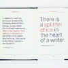 Esta coleção portátil é o presente perfeito para escritores, aspirantes a escritores e qualquer pessoa curiosa sobre as ideias e personalidades que moldam a arte da escrita. Citações de Charles Bukowski, Zaddie Smith, Patti Smith, Beverly Cleary, Henry James, Mark Twain, Chinua Achebe entre muitos, muitos outros.